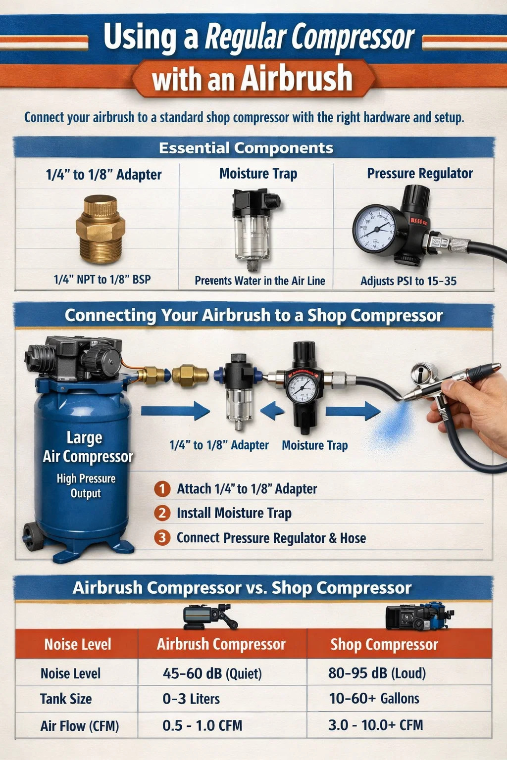پاسخ مستقیم: استفاده از کمپرسور معمولی با یک ایربراش